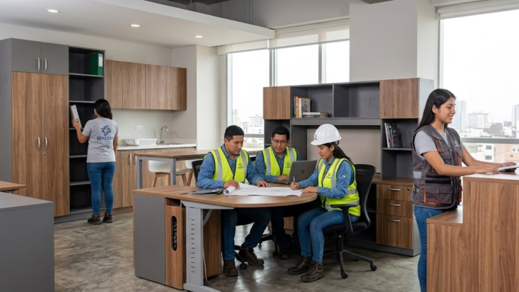 4. Mobiliario Residencial y Kitchenettes: Closets a medida, reposteros de cocina para áreas de comedor corporativo y zonas de descanso.